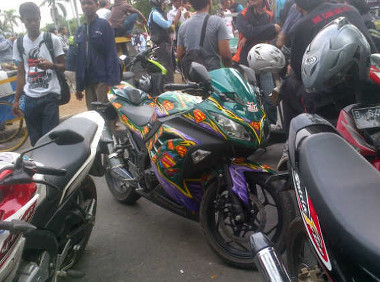 "Tahu tuh punya siapa. Tapi yang pasti punya buruh," tutur salah seorang buruh yang tidak mau menyebutkan namanya saat ditanya detikcom perihal pemilik motor Ninja N250 berlabur airbrush bertema Superman di depan PT Kalbe di EJIP, Jumat (1/11/2013).